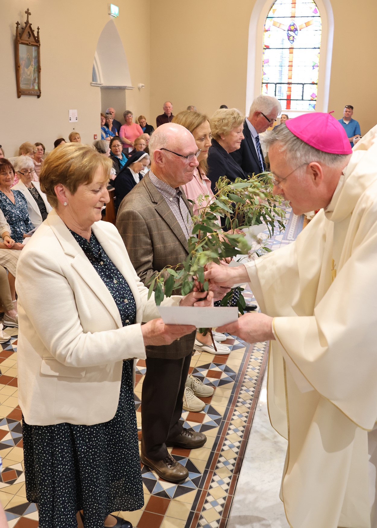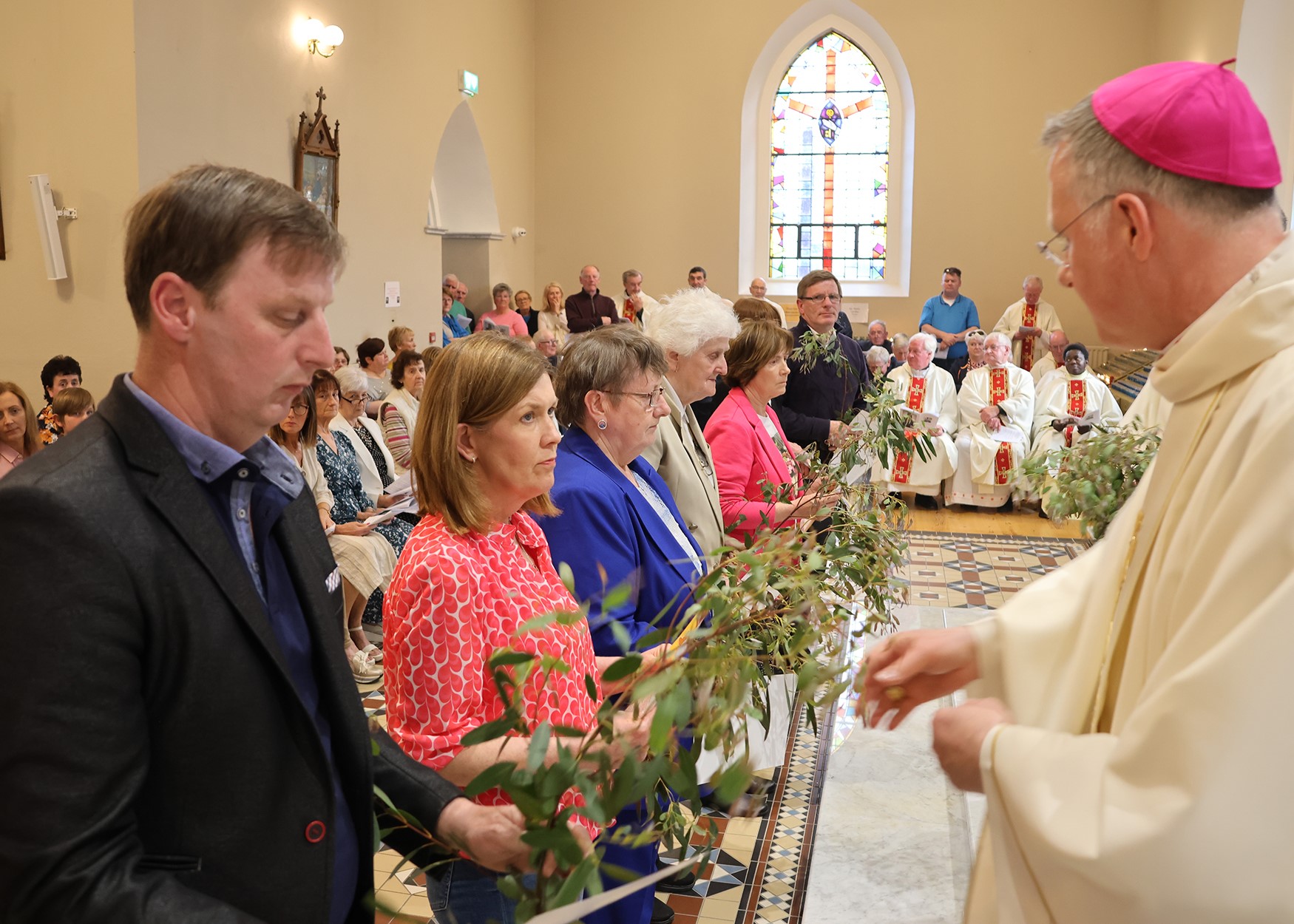On Tuesday the 16th May – the Feast of St Brendan the Navigator, Bishop Michael Duignan celebrated Mass at the Shrine of Our Lady of Clonfert. During the celebration, he launched three new Faith Community Areas or groupings of parishes to assist with planning for the future. During the ceremony, representatives of each of the twenty-four parishes that comprise the Diocese of Clonfert were given a mandate constituting the areas along with an evergreen branch symbolising hope for new growth and a fruitful future. Taking the prayer of St Brendan as their own the prayed “Lord, help me to journey beyond the familiar and into the unknown. Give me the faith to leave old ways and break fresh ground with you. Christ of the mysteries, I trust you to be stronger than each storm within me.”